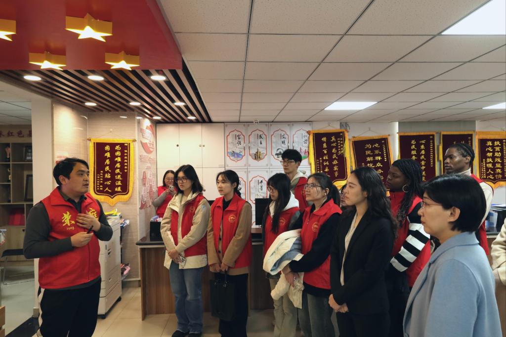 工作人员首先带领留学生参观文化工坊,讲解工坊在非遗传承、服务居民文化需求等方面的价值,助力留学生建立对中国社区文化建设的初步认知,也让他们对中国社区如何通过文化工坊凝聚居民、守护传统有了更深刻的理解。