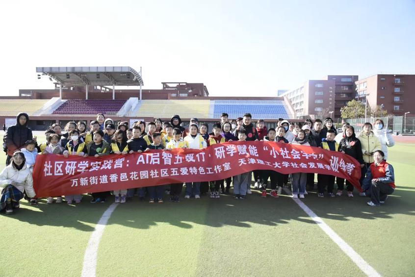 为深化校地共建内涵,搭建高校资源与社会需求精准对接桥梁,提升高校服务社会能力,2025年11月16日,社会发展学院联合东丽区万新街道,成功举办校园研学活动。依托学院终身学习品牌项目“小社会学家训练营”,打造香邑花园社区“五爱特色工作室”,以“AI‘龄’距离:小社会学家的代际对话”为主题,邀请中小学生及家长代表走进校园。通过沉浸式体验、科技互动与户外协作,有效打破代际认知壁垒,引导青少年以共情视角理解老年人,实现知识习得与心灵成长的双重目标。
