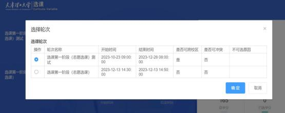 换轮次: 如果当前开放多个轮次选课 , 可以从这里切换至其它轮次选课。