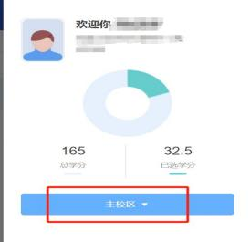 我的: 可以看到当前轮次下已选学分。 如果选课轮次是开放跨校区选课的 , 可以点击校区进行切换校区操作。