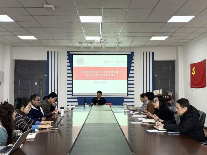 为进一步贯彻落实立德树人根本任务,推动“招生-培养-就业”一体化发展机制落地见效,社会发展学院近期召开本科人才培养质量提升与招生就业协同发展研讨会,聚焦“人才培养提质、招生就业增效、招生-培养-就业一体化贯通”核心议题,特邀天津理工大学魏克新教授参会指导、深入交流。学院教学院长主持会议,学院全体党政领导班子成员、各专业骨干教师和青年教师代表齐聚一堂,共同探讨学院发展思路,凝聚一体化发展共识。