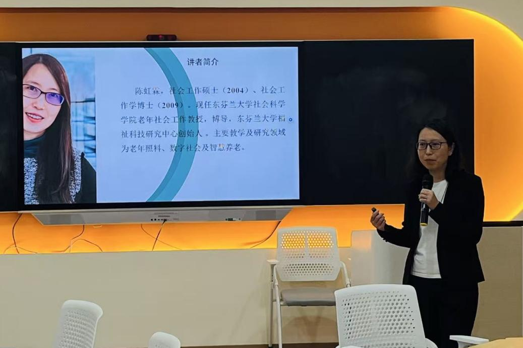 陈虹霖教授作题为《From justice to inclusion: E-health service for older adults》现场讲座,与学院师生分享老年人数字健康服务的芬兰实践。东芬兰大学社会科学学院系主任Timo Toikko教授通过线上形式发表《Balancing Demand and Provision in Social Services: Insights from Finnish Data》主题演讲,解析芬兰社会服务供需平衡经验。讲座现场反响热烈,师生就技术伦理、服务本土化等议题开展深度交流探讨。