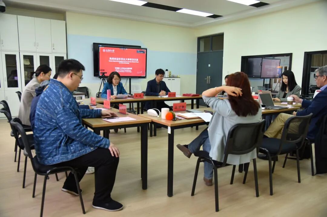会议伊始,学院对Timo Toikko教授一行的到来访表示诚挚欢迎。同时强调东芬兰大学在社会科学领域尤其是社会工作学科的国际视野与成熟培养体系,社会发展学院深耕社会工作、社会学学科二十余年,具备与国际高校深度合作的扎实实力,双方对高层次人才培养的追求高度契合。随后,国际交流处负责同志介绍了学校国际化发展战略,强调学校将从政策、资源等方面为合作提供全力支持,助力项目高效推进。徐丽敏院长随后结合学院发展规划,详细阐述了对接国际项目的具体思路。东芬兰大学Timo Toikko教授也分享了该校国际硕士培养框架与特色优势。表示期待通过双方合作,实现人才培养理念的互融与学术资源的共享。双方共同签署《东芬兰大学-天津理工大学社会工作硕博连读联合培养合作协议》《国际MSW硕士“1+1+1”合作框架》,在自由讨论环节,双方围绕 “1+1+1”MSW 项目落地细节、硕博连读生选拔标准与双导师机制、教师互访及科研平台共建等议题深入交流,明确了后续联络机制与工作推进安排。